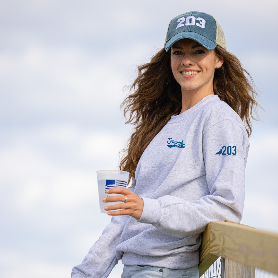 Choose curbside pickup if you're local, or have your crewneck shipped straight to your door. Order now before they’re gone! 🍻 #203xSeagrape