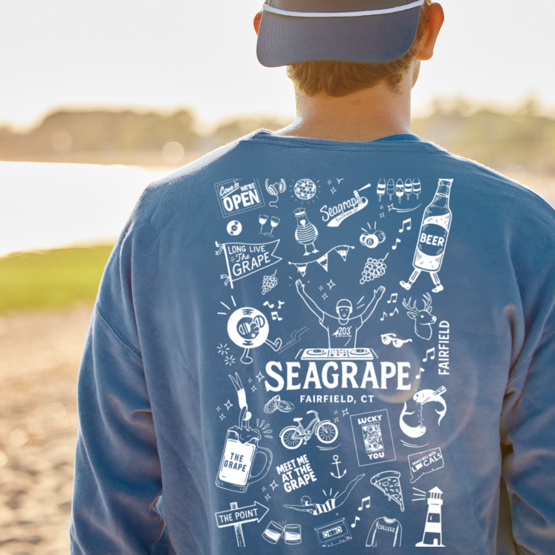 Whether you’re a Fairfield U or Sacred Heart alum, a current student, or a local who knows the magic of a Grape night, this crewneck is for you. Cozy, stylish, and packed with nostalgia —whether you’re on campus, at the beach, or reminiscing from afar.
