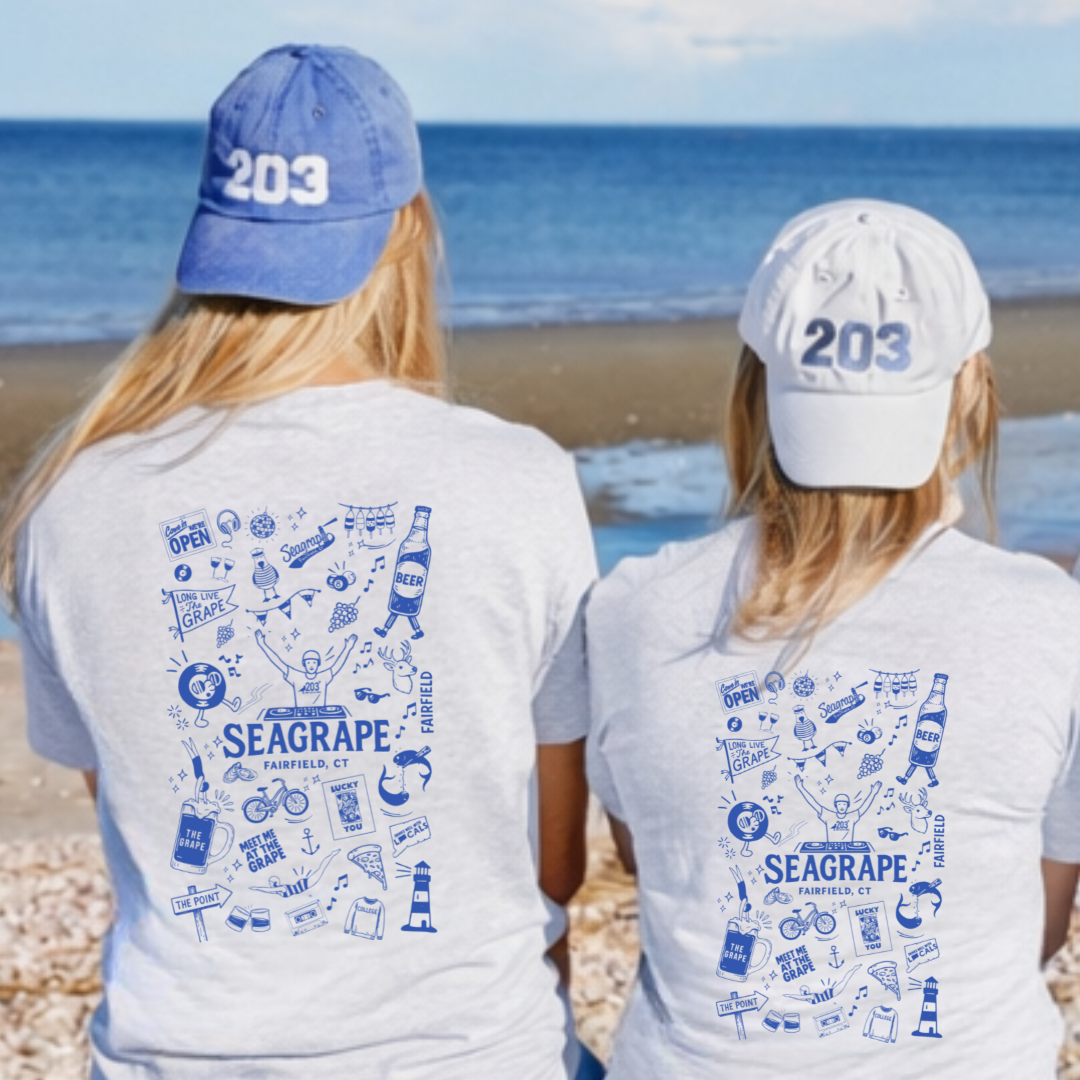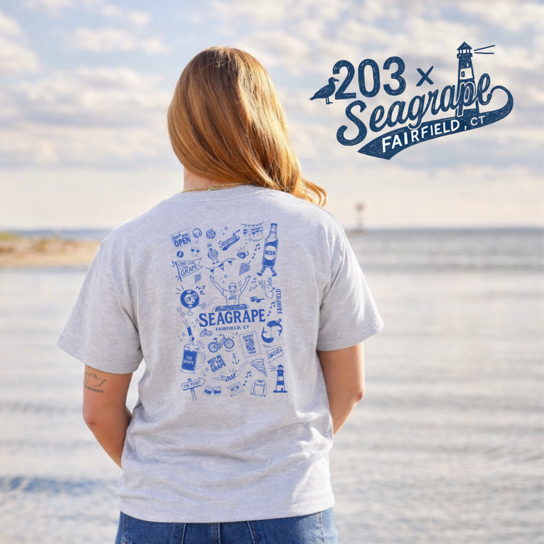 Back by popular demand—the 203 x Seagrape tee is here for a limited-time pre-sale! This ultra-soft fan-favorite won’t stick around for long, so don’t miss your shot to snag one.This tee is the ultimate way to rep your love for Fairfield’s most iconic bar.