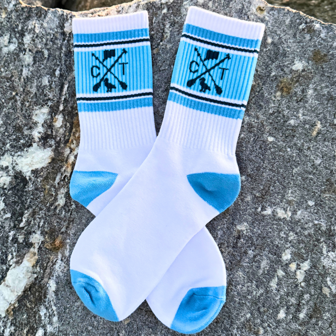 They feature our signature CT Paddle design, making them the perfect pair for all of your coastal Connecticut adventures- whether you’re on the water, in the woods, or just repping local pride all year long!