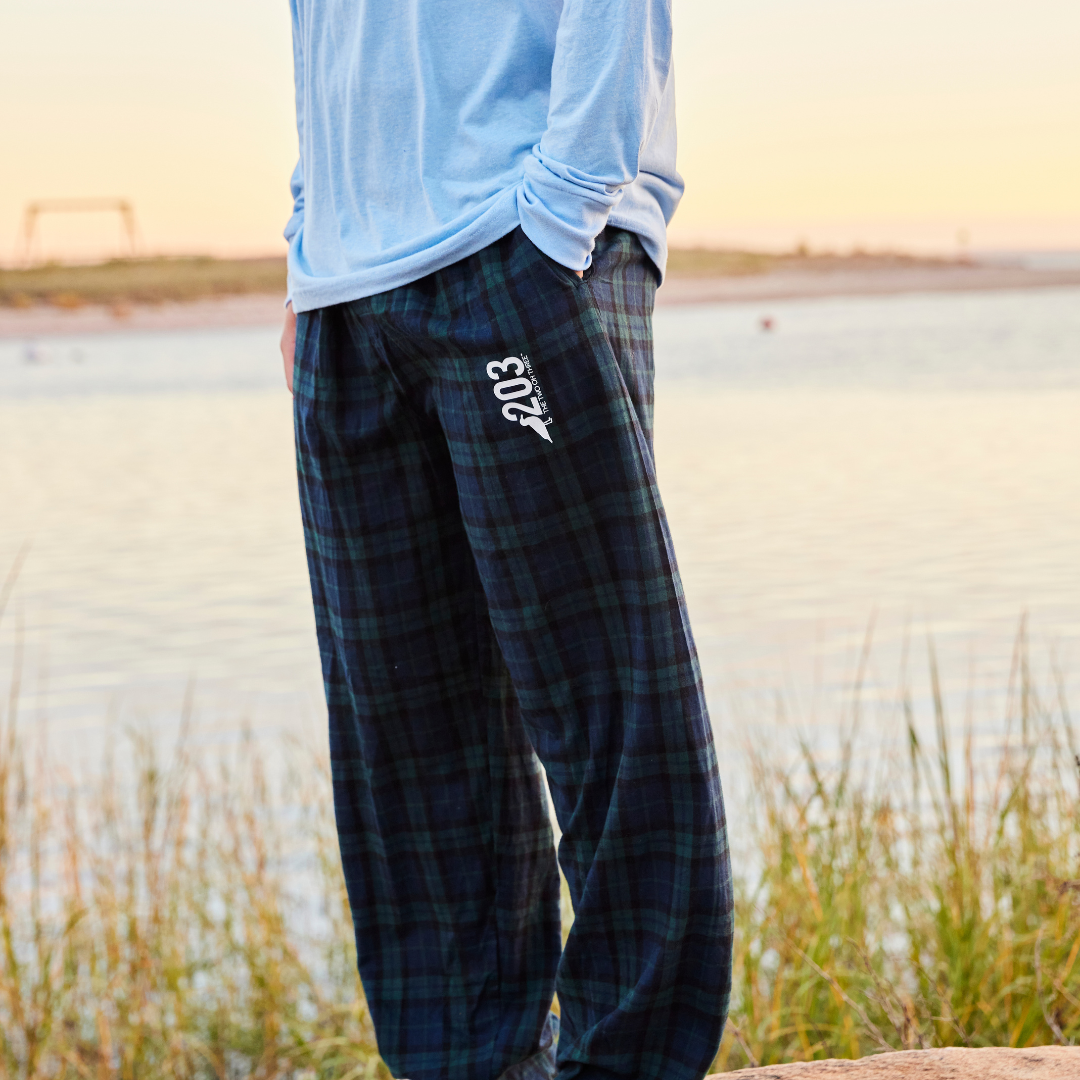Loungewear is always in season- especially when it’s this cozy. Our 203 Flannel Lounge Pants are the ultimate Connecticut comfort essential. Perfect for lazy weekends, study sessions, or chilly nights by the fire, these unisex lounge pants deliver all-day softness with double-brushed 100% cotton flannel.