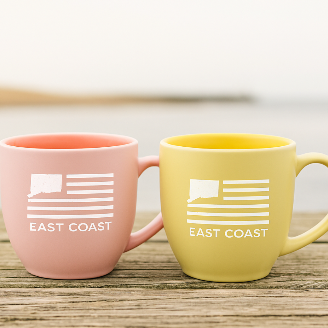 Our East Coaster Mug is the perfect blend of coastal charm and local pride. This 15 oz. bistro-style mug features a soft matte pastel exterior with a glossy matching interior, giving it that effortlessly polished look you’ll reach for every morning.