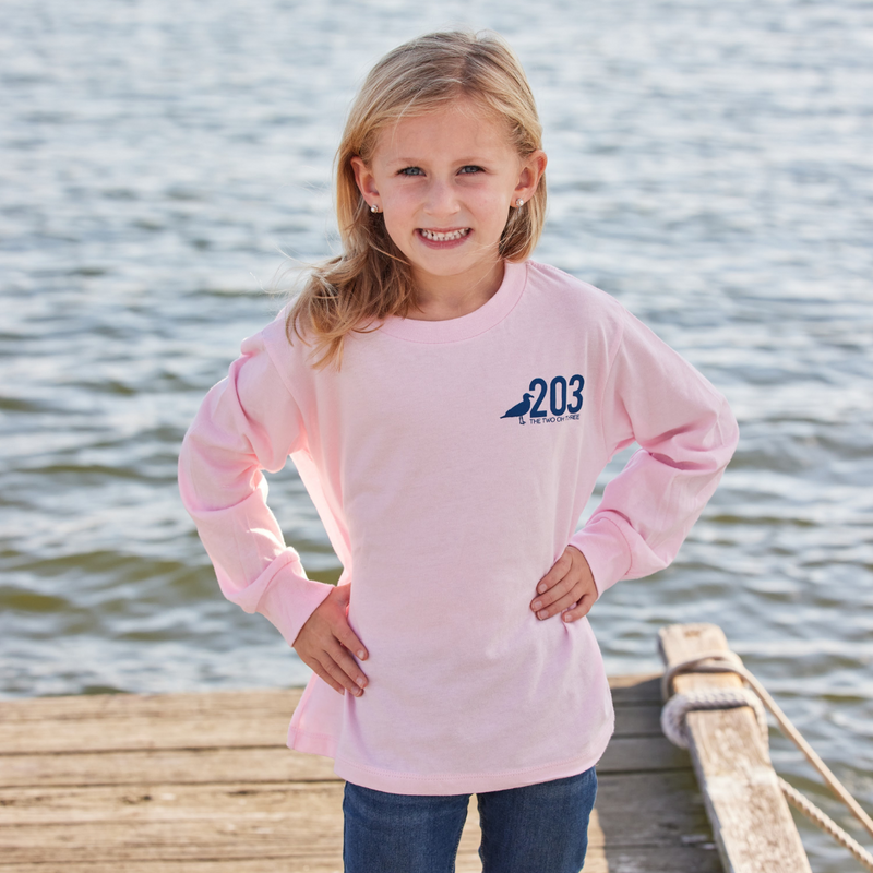 Our 203 Toddler Home Long Sleeve is made for all-day comfort and endless adventures- perfect for the littlest Connecticut locals. Designed in a soft pink with our signature 203 design on the front and HOME design on the back, it’s a true hometown staple for families who love to rep their roots.
