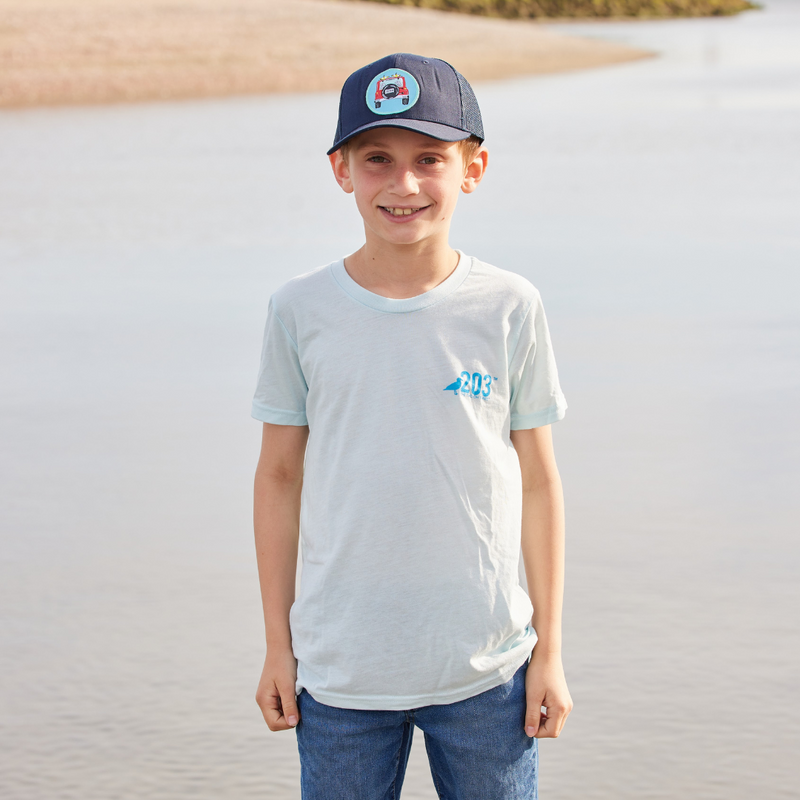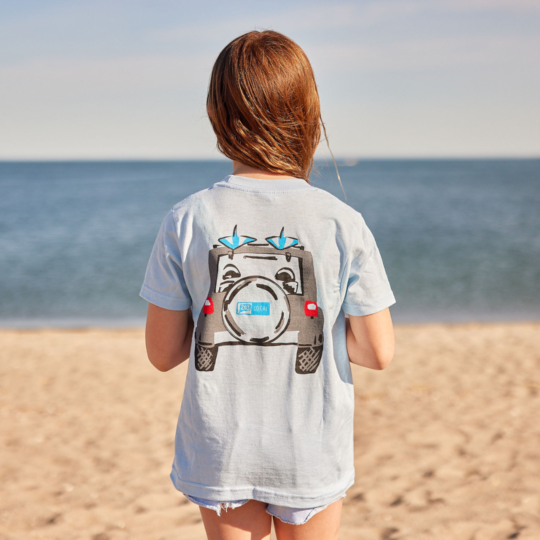 The 203's ultra-soft Youth 203 Jeep Tee is guaranteed to be the softest in your little local’s closet. Featuring our iconic Connecticut Jeep + surfboard design, this crew neck tee is made from premium ring-spun cotton with short sleeves and all-day comfort.