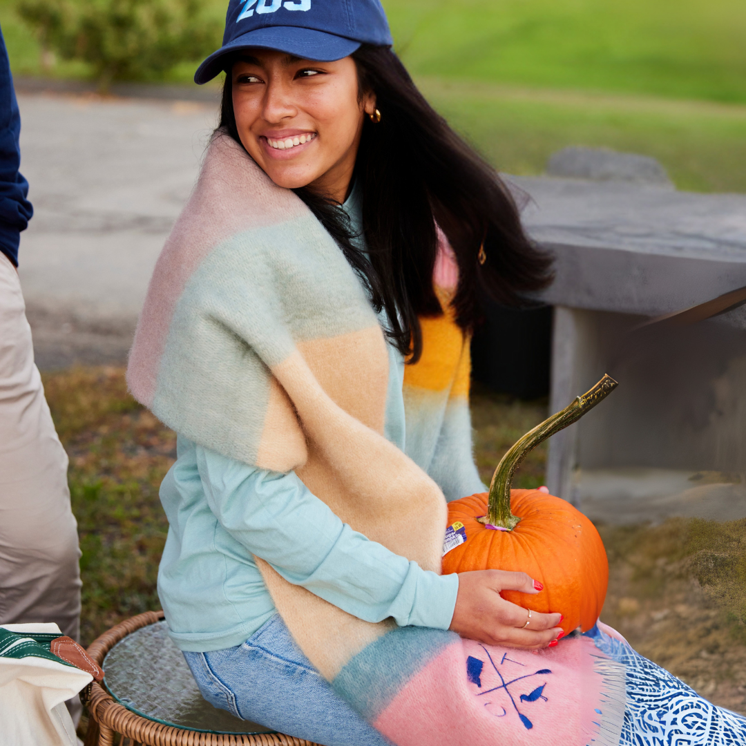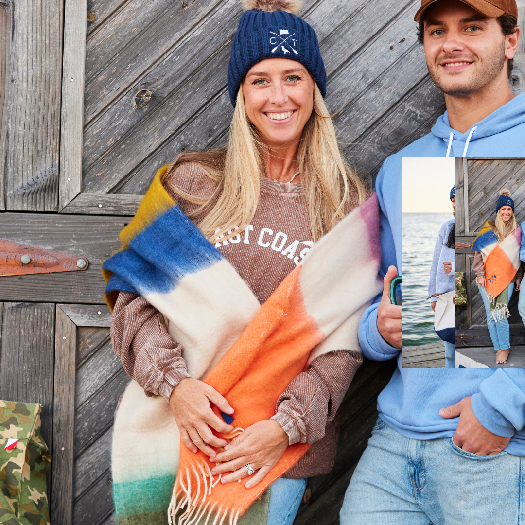 Cozy up in style with our Connecticut Color Block Scarf, the ultimate accessory for chilly East Coast days. Our oversized, ultra-soft scarf is crafted from 100% acrylic fabric.