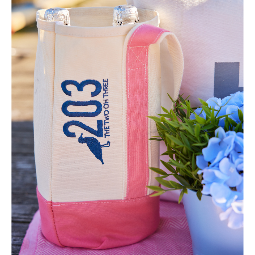 The 203’s double Wine Tote Bags make the prefect companion for all your Connecticut adventures this season! Made from heavyweight cotton canvas, they securely hold two bottles. These make the perfect hostess gift!